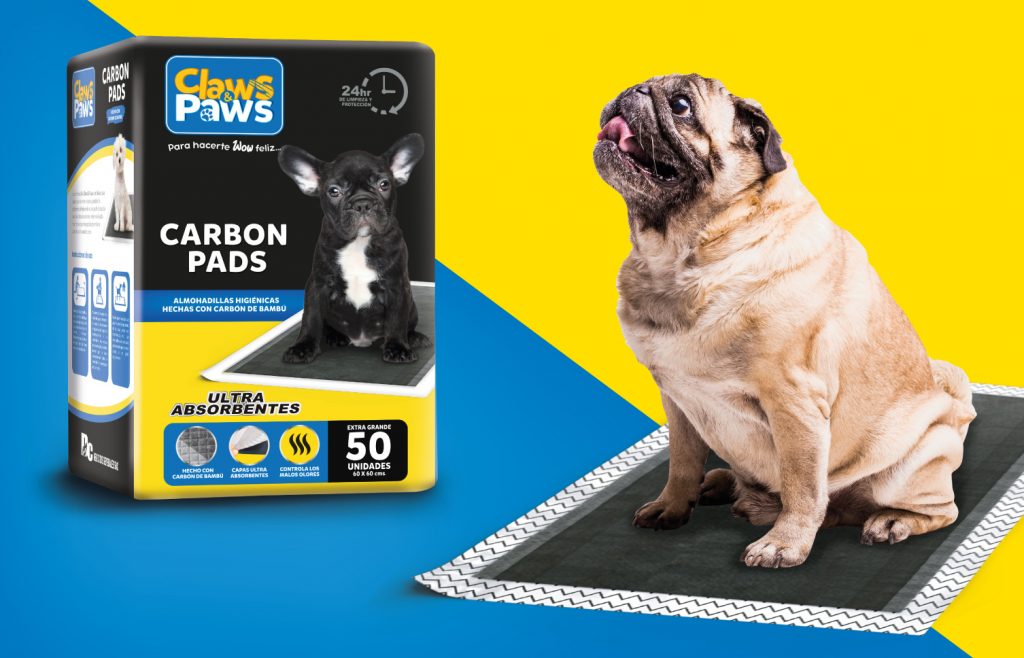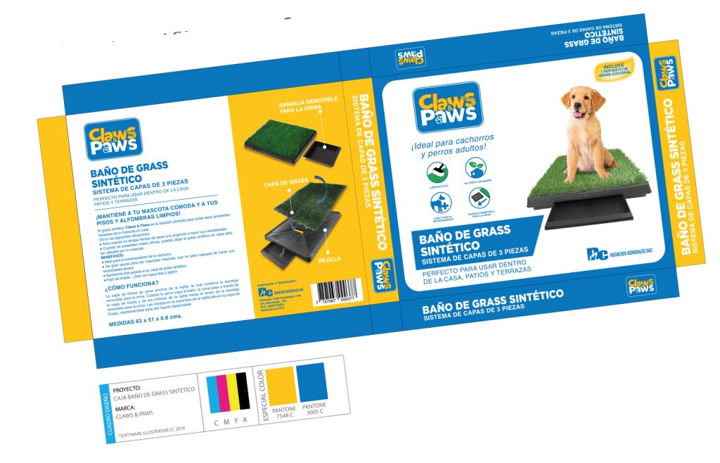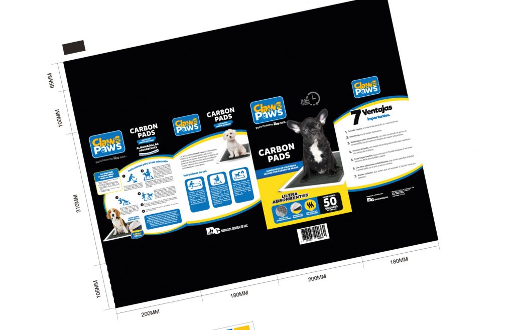 Diseño de Marca / Empaque Marca: Claws & Paws – Marca de productos para mascotas Productos: – Diseño de Empaque – Pañal Carbon Pads – Diseño de Empaque – Caja Grass Sintético