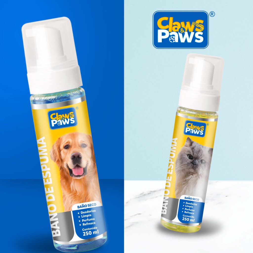 Diseño de Etiquetas para la línea de productos Shampoo y Baño de Espuma para la marca Claws & Paws, con 3 variedades para cada tipo de pelaje. Baño de Espuma para Perros & Gatos.